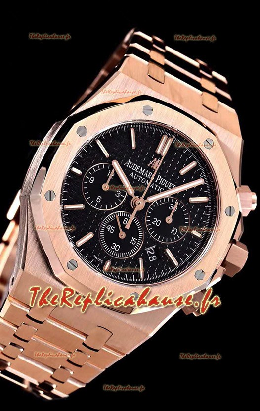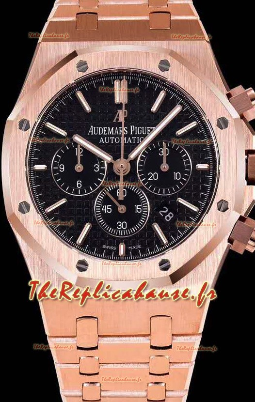 Audemars Piguet Chronographe Royal Oak Boîtier en or rose Cadran noir - Réplique miroir 1:1