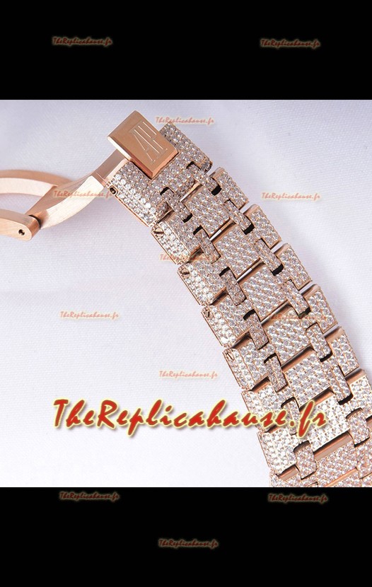 Audemars Piguet Royal Oak 15400 Iced Out Cadran à bâtons dans un boîtier en or rose Réplique de montre suisse