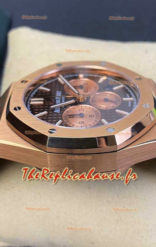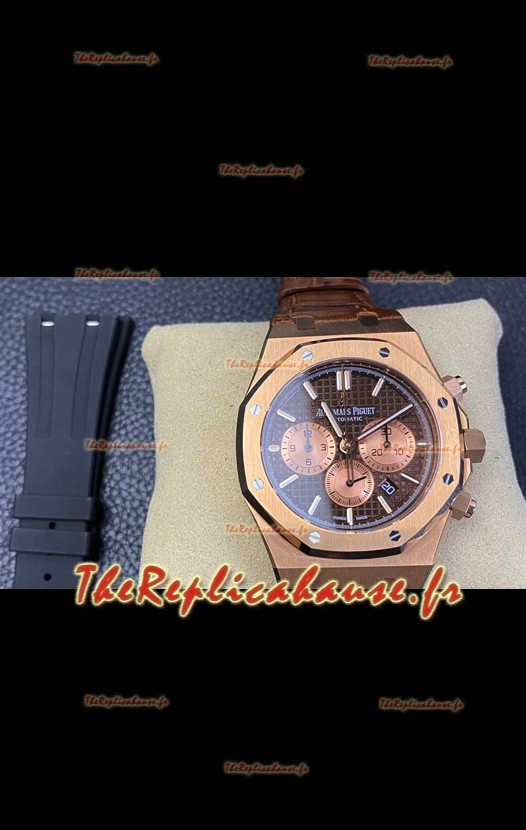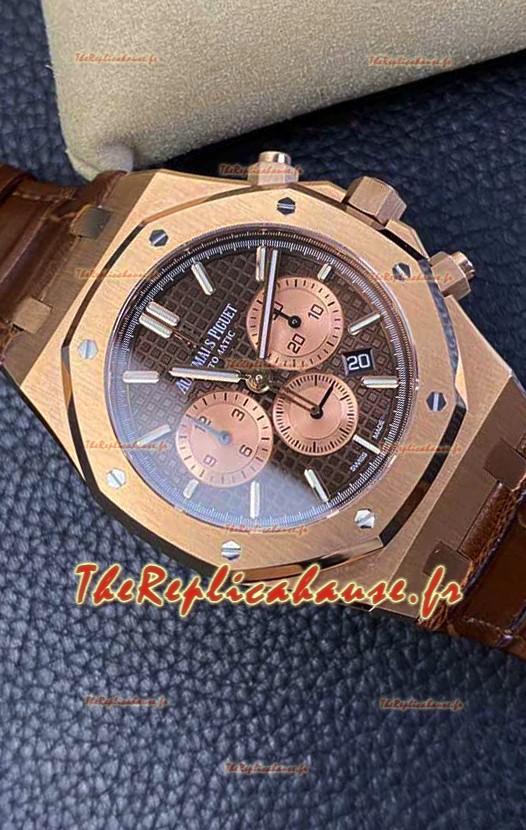 Audemars Piguet Royal Oak Chronograph Or Rose Cadran Marron Bracelet Cuir Réplique Montre Suisse