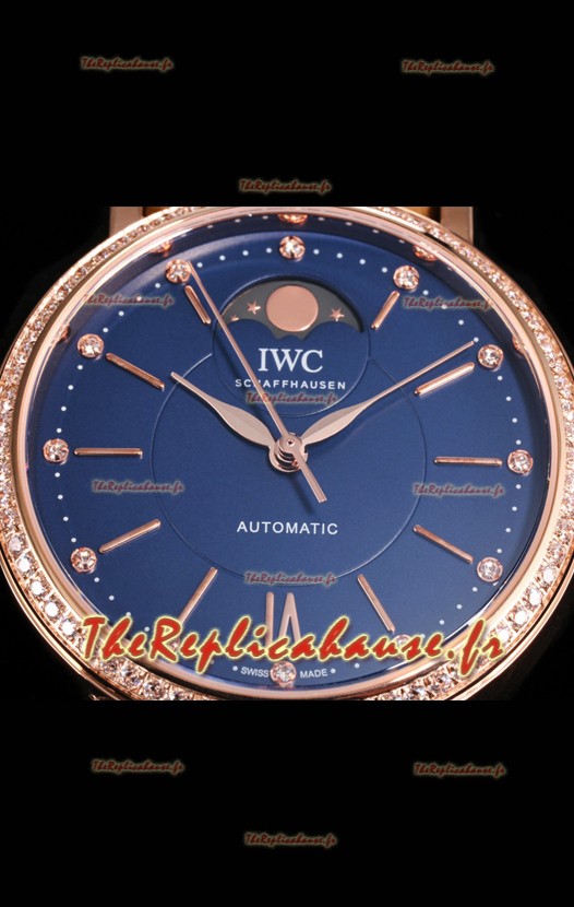 IWC Portofino IW6596 Montre automatique phase de lune en or rose avec cadran bleu 37MM
