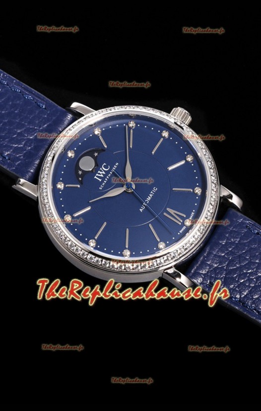 IWC Portofino IW659601 Montre automatique à phase de lune en acier avec cadran bleu 37MM