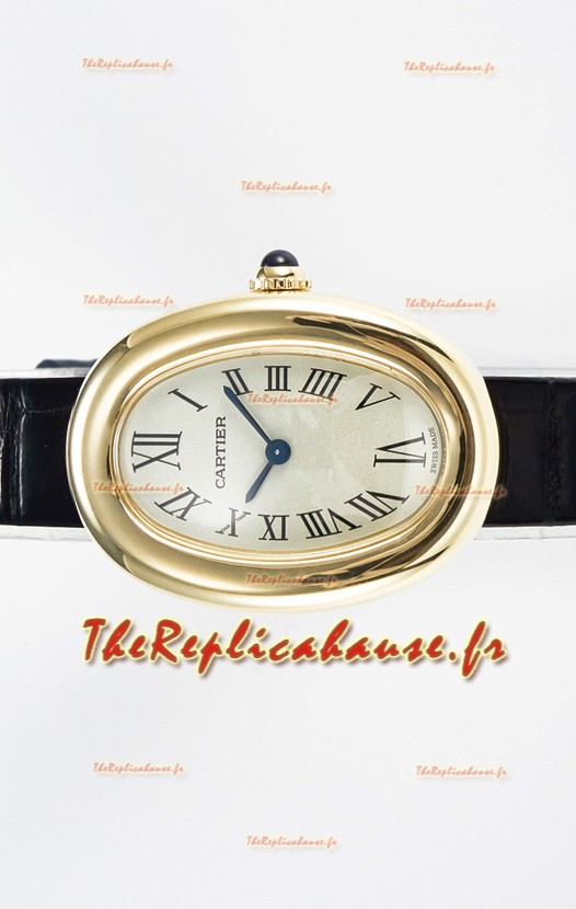 Cartier Baignoire Or Jaune Réplique Montre suisse Super Clone 1:1 Bracelet Noir