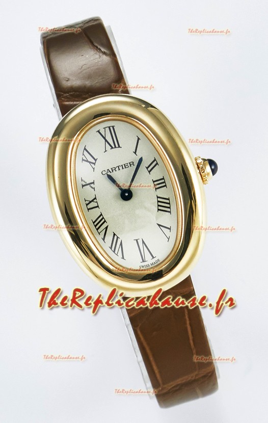 Cartier Baignoire Or jaune Montre 1:1 Super Clone suisse Bracelet marron