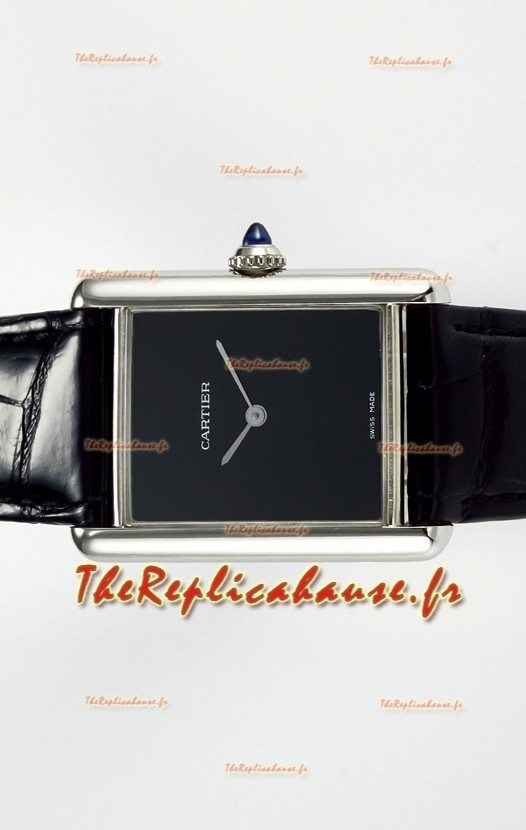 Tank Must Cartier Montre Super Clone Edition 33.7MM en acier avec cadran noir
