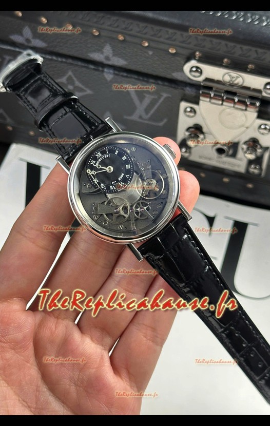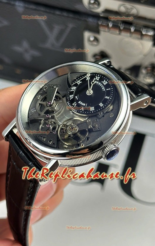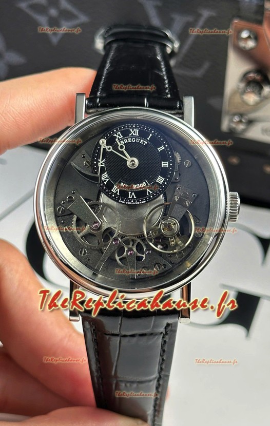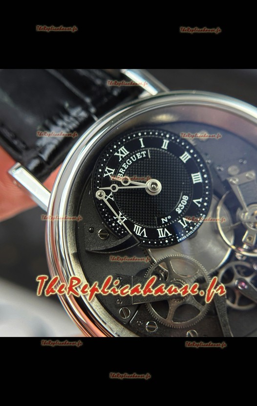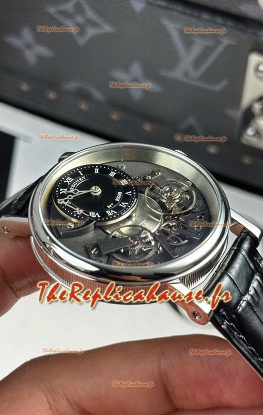 Breguet Tradition 7057BR/R9/9W6 Boîte en acier Tourbillon simple Réplique de la montre suisse à bracelet noir