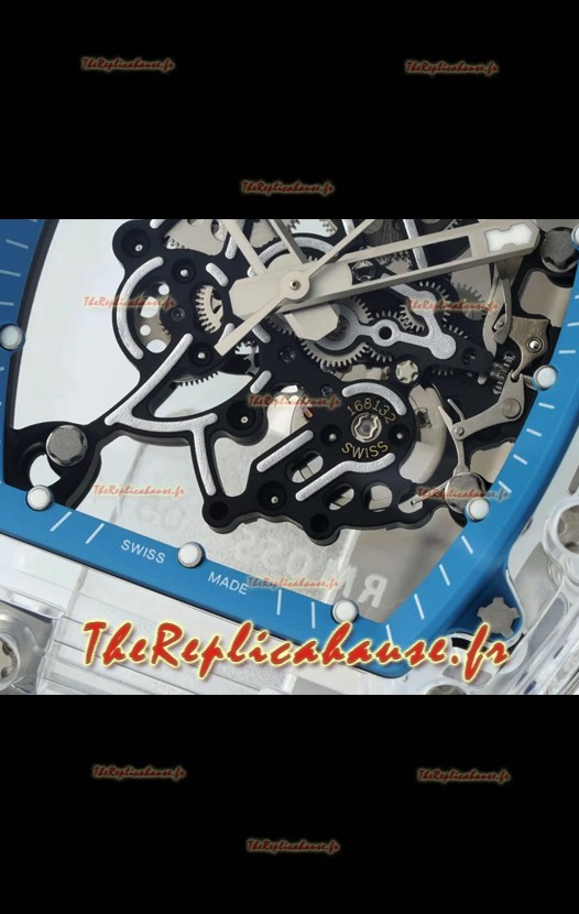 Richard Mille RM055 Boîtier transparent en saphir avec tourbillon authentique Montre Super Clone