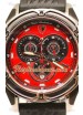 Cadran rouge avec Trois cadrans Subdials fonctionnelles et Fenêtre de Date