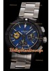 Cadran bleu foncé avec 3 sous-cadrans fonctionnels et fonction chronographe, conforme aux originaux.