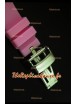 Cadran avec carreaux roses avec fenêtre pour date à 3 heures.