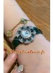 Lunette sertie de diamants et de saphirs colorés. Cadran en nacre.