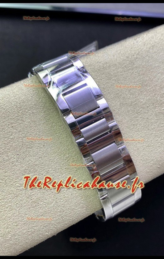 Bracelet en acier inoxydable 904L avec marquages et gravures Cartier et boucle déployante double.