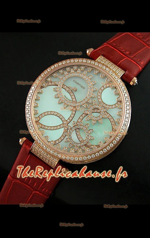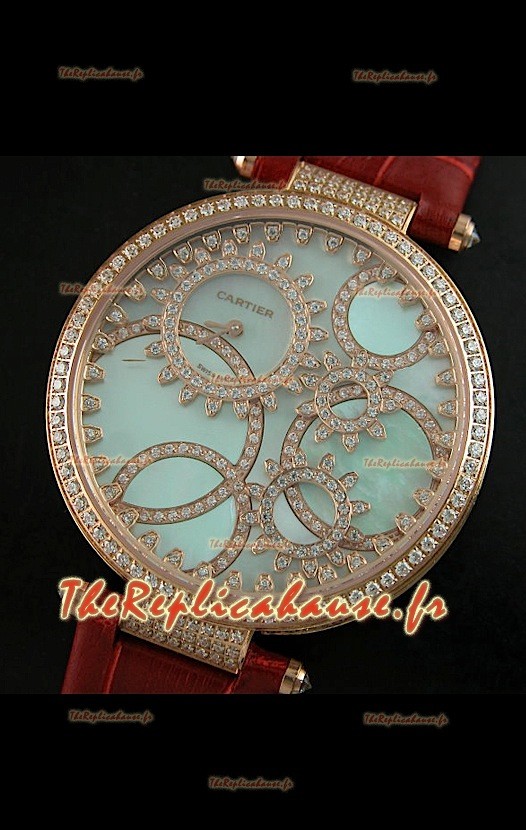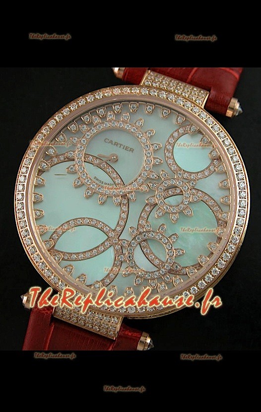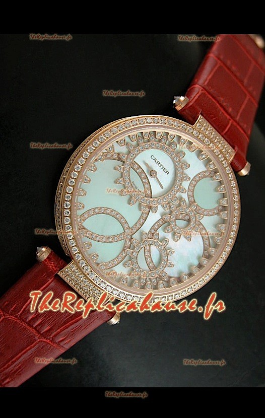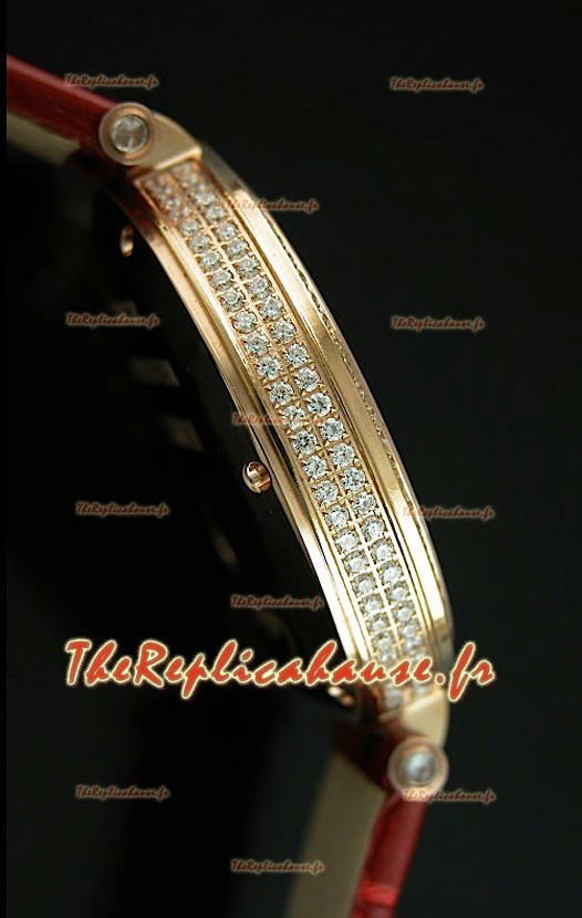 Cartier Reproduction Montre avec Lunette Cadran Incrustés de Diamants dans un Boitier en Or/Bracelet Marron