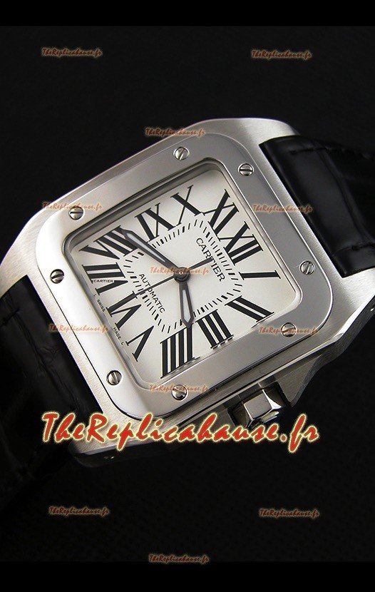 Cartier Santos De Cartier Montre Femme 1:1 Miroir Réplique Suisse Sangle noire 33MM