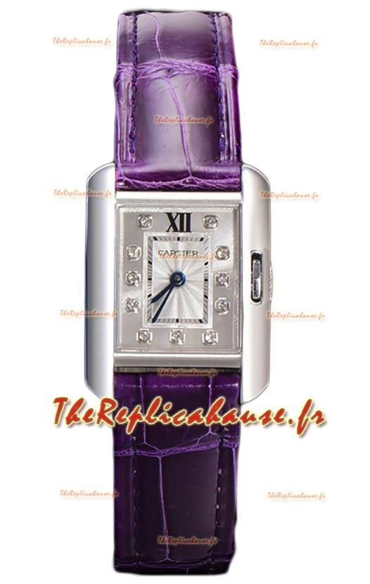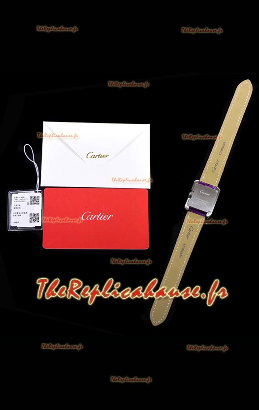 Cartier Tank Anglaise Montre en acier inoxydable avec bracelet en cuir violet Montre à quartz suisse 30MM