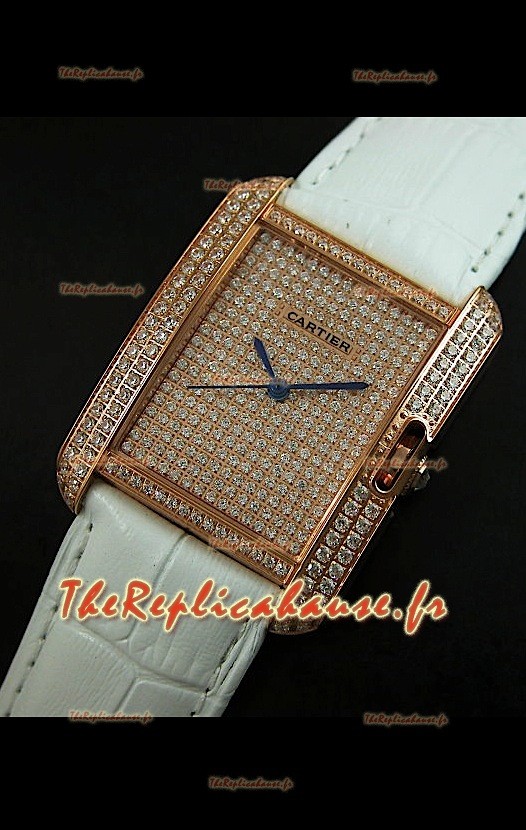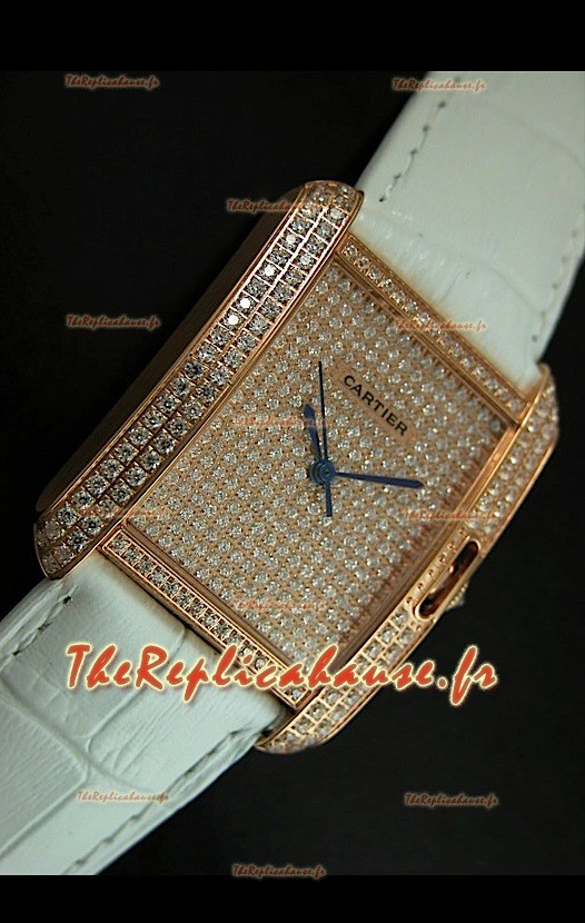 You're reviewing: Cartier Tank Anglaise Reproduction Montre Pour Femmes avec Boitier en Or/Bracelet Blanc