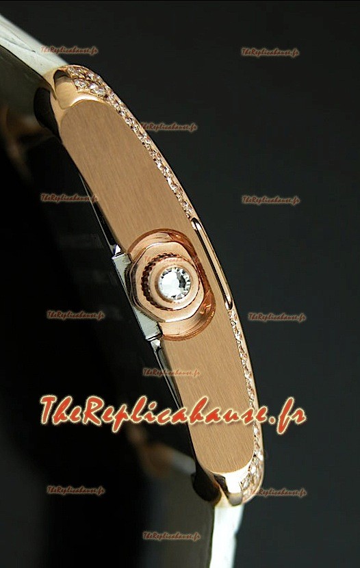 Boitier en Acier Inoxydable 440 Poli plaqué en Or 18K avec un Cadran à Aigrettes et une Lunette Incrustés de Diamants de Coupe Suisse de Haute Qualité