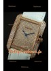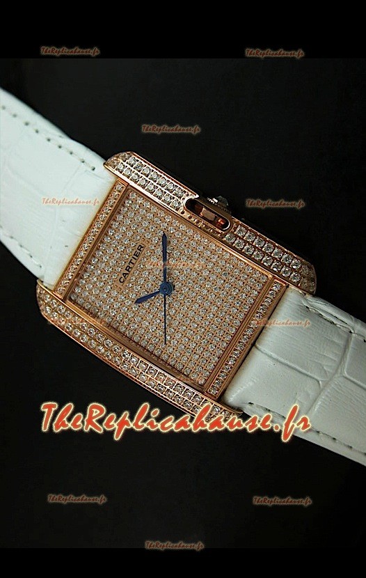 Cartier Tank Anglaise Reproduction Montre Pour Femmes avec Boitier en Or/Bracelet Blanc