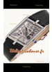 Cartier Tank Asymétrique Montre-boîtier en acier inoxydable sur bracelet cuir Réplique Suisse