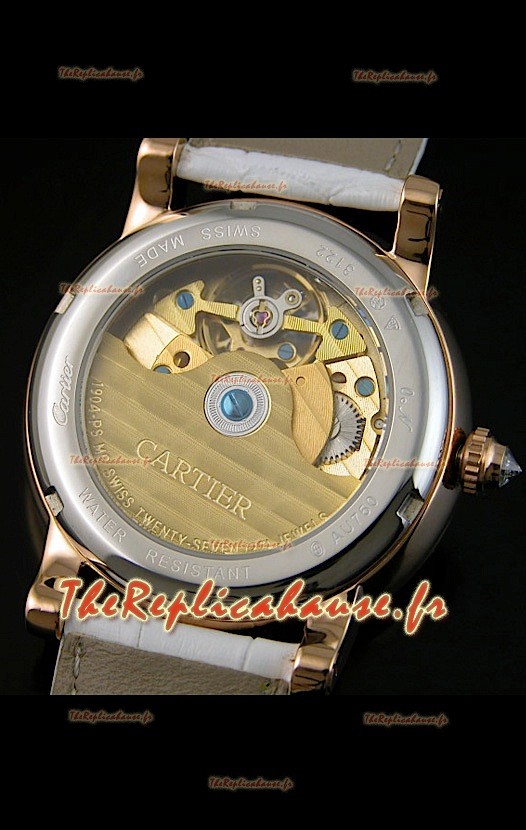 Ronde de Cartier Tourbillon Reproduction Montre Boitier en Or Rose - Bracelet Blanc