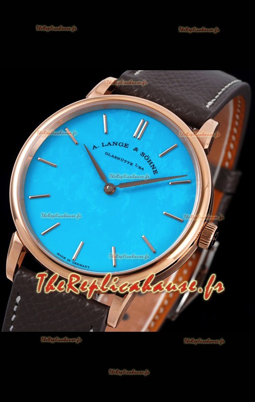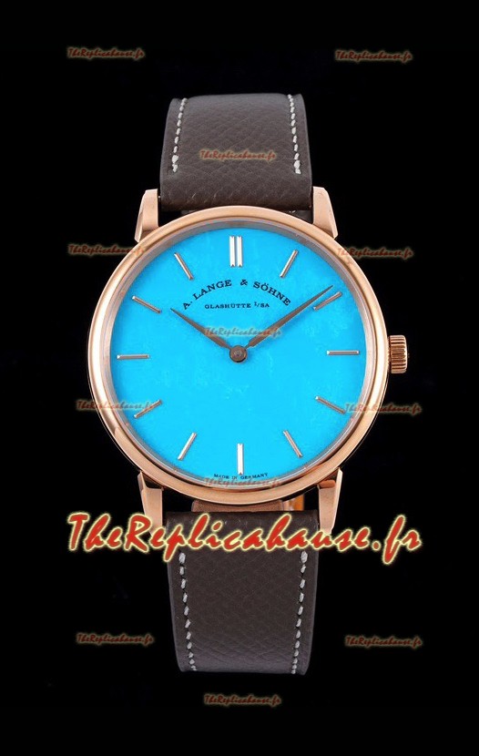A. Lange & Söhne Saxonia Thin Montre réplique suisse Boîtier en or rose Cadran bleu Tiffany