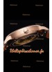 Plaquage or rose 18 carats sur boîtier en acier inoxydable massif 904 poli, fond transparent en acier. Lunette polie.