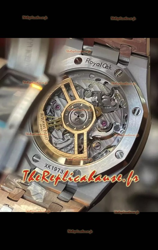 La structure du mécanisme est exactement la même que celle du mouvement Audemars Piguet 3126 Calibre utilisé dans les authentiques montres Audemars Piguet Offshore. Construite sur l'architecture du mouvement suisse 7753 authentique avec une fonction de chronomètre comme sur les montres authentiques, avec l'aiguille des secondes à 12 heures.