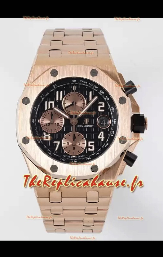 Audemars Piguet Royal Oak Offshore Chronographe cadran noir Montre réplique miroir 1:1 - Or rose
