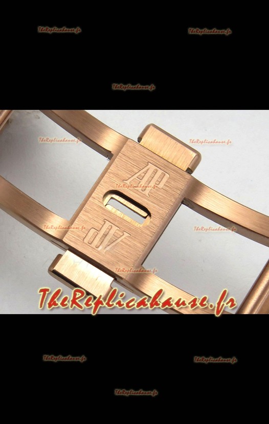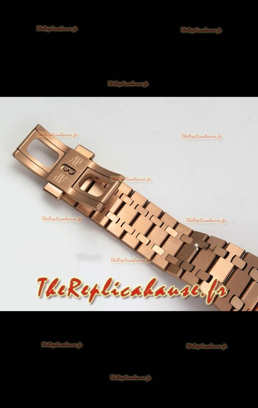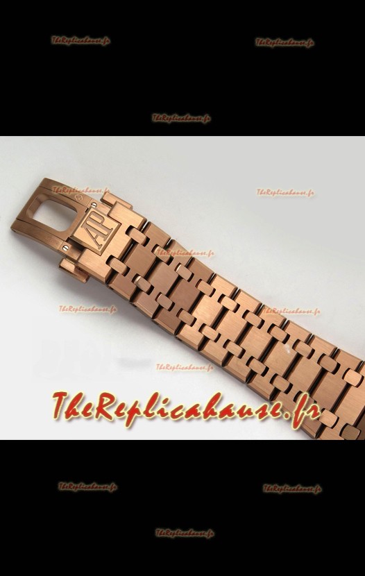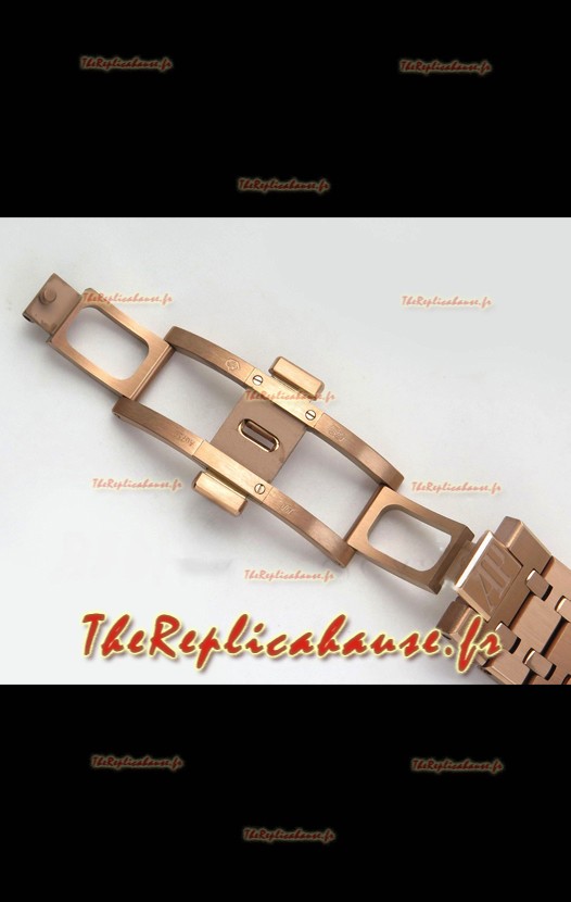Bracelet en acier inoxydable 904L plaqué or rose avec marquages ​​et gravures Audemars Piguet et fermoir signé AP.