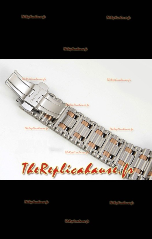 Boîtier en acier inoxydable 904L plaqué or rose bicolore 18 carats, orné des marquages ​​et gravures Breitling.
