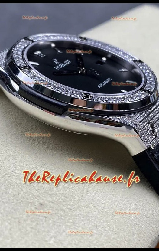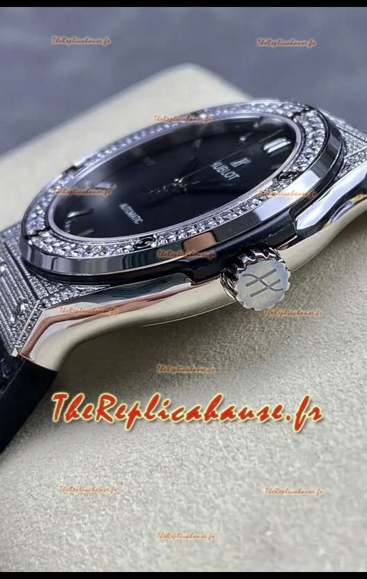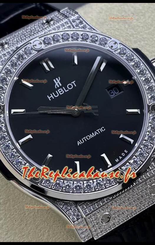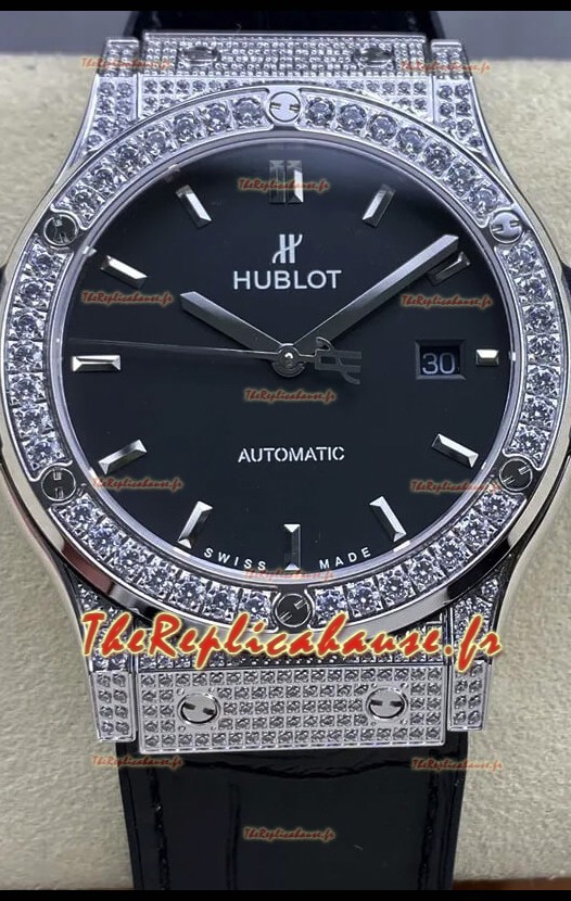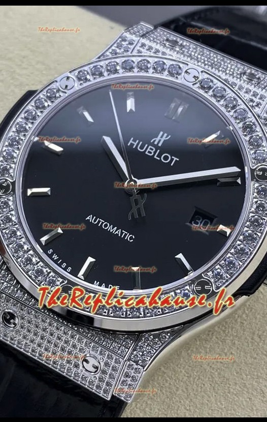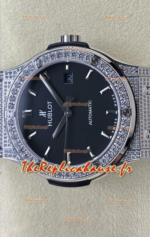 Hublot Classic Fusion Acier inoxydable Diamants Cadran noir Suisse Réplique Montre de qualité miroir 1:1
