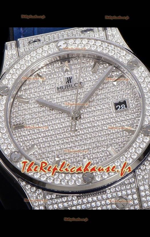 You're reviewing: Hublot Classic Fusion Automatique Acier Diamants Cadran Pavé Bracelet Bleu 42MM Montre Réplique Superclone