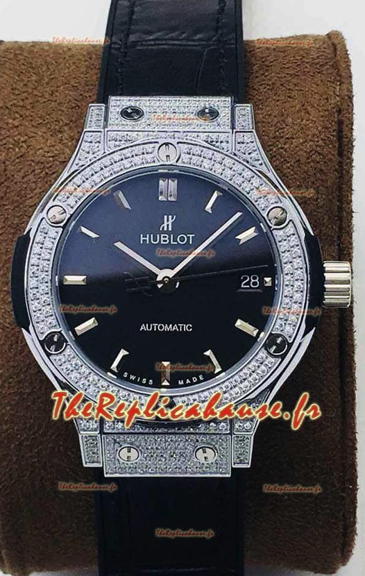 Hublot Classic Fusion Diamants Acier Cadran noir 38MM Montre réplique 1:1 Qualité miroir