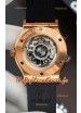 Bracelet en caoutchouc avec boucle déployante en or rose, complet avec marques et gravures Hublot.