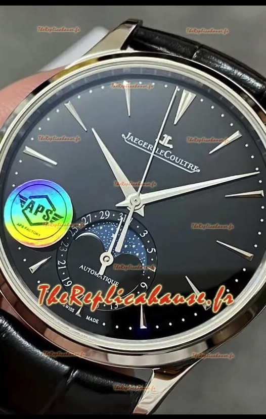 Jaeger LeCoultre Master Ultra Thin Moon Cadran noir 904L Acier Montre Réplique 1:1