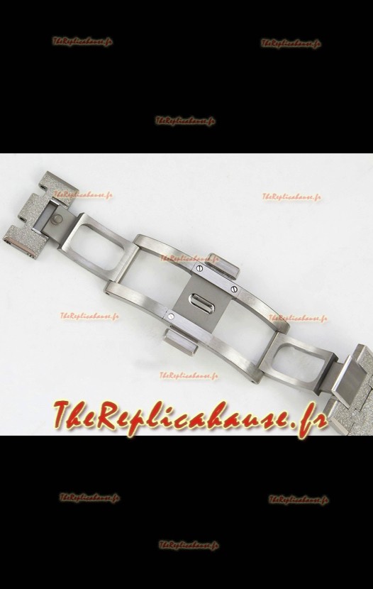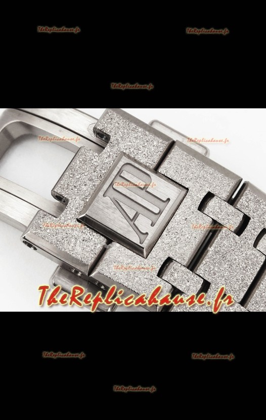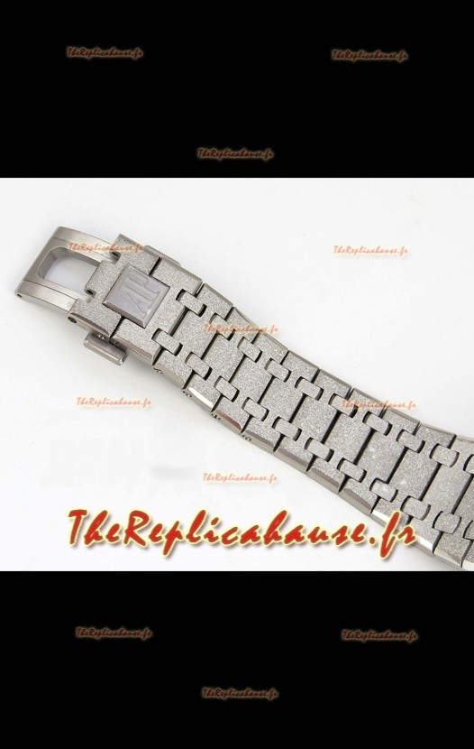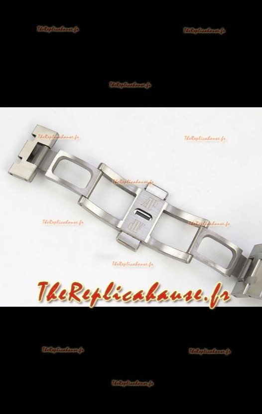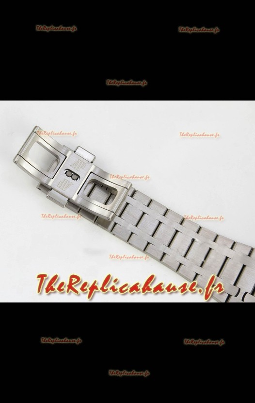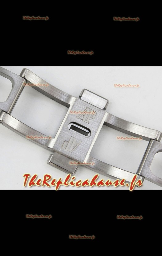 Bracelet en acier inoxydable 904L plaqué or blanc givré, orné des marquages ​​et gravures AP, conforme aux originaux, et boucle déployante AP.