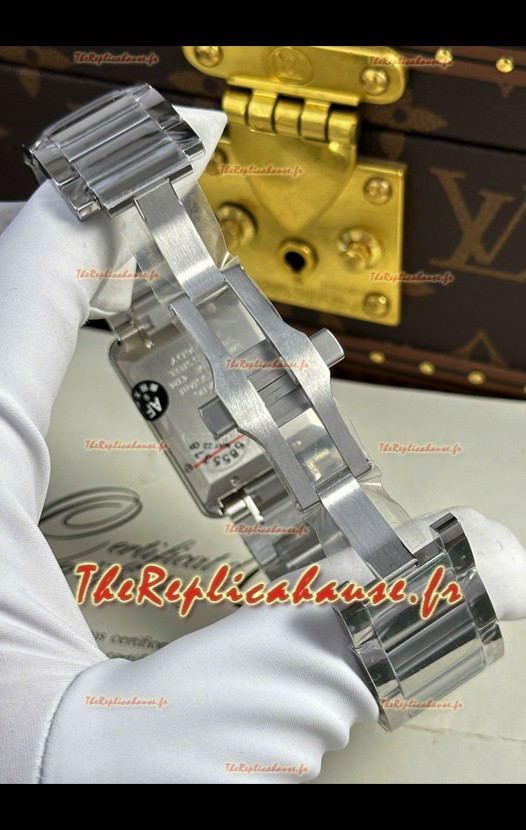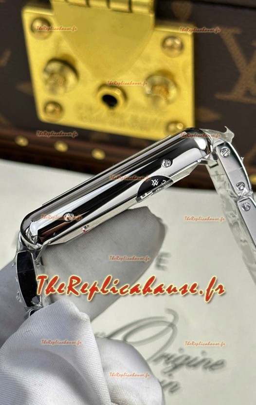 Boîtier en acier inoxydable 904L avec fond plein orné des marquages et gravures Cartier.
