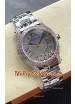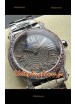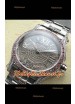 Cadran pavé de mossanites avec chiffres romains en or rose et guichet de date à 4 heures, serti de diamants flottants signature