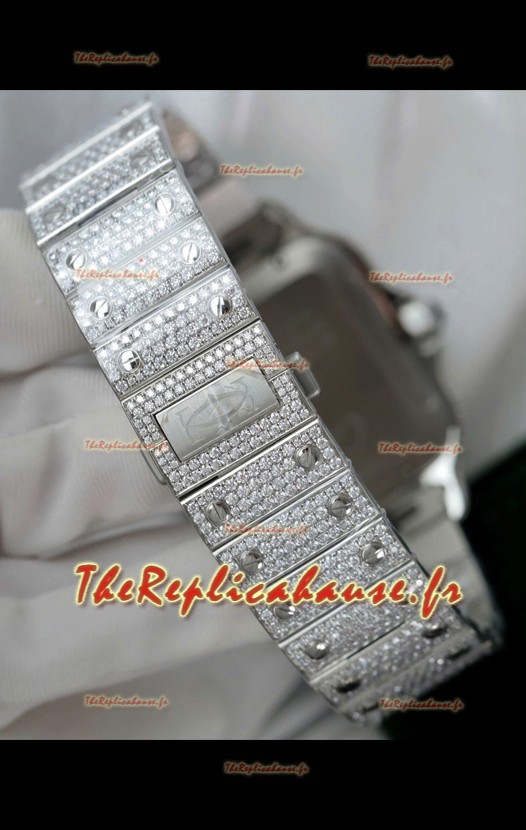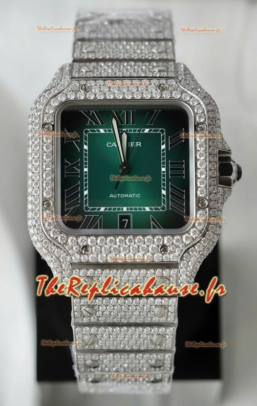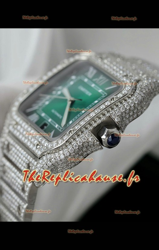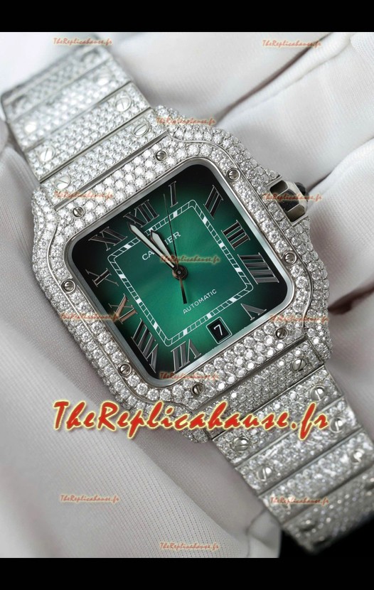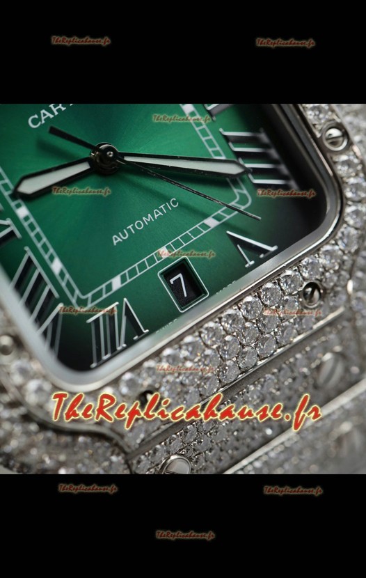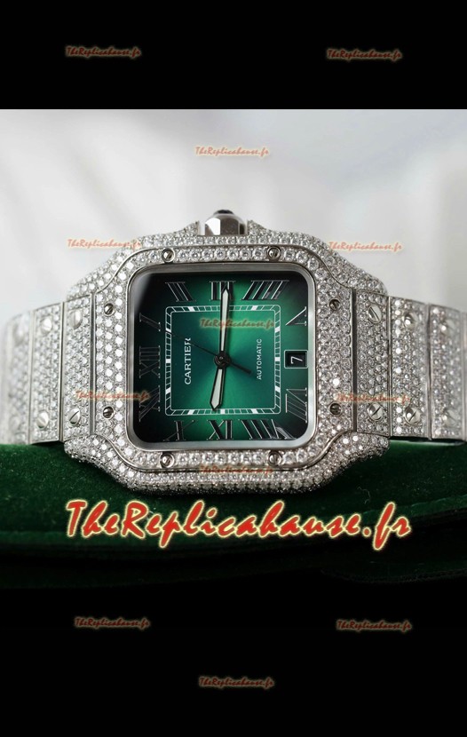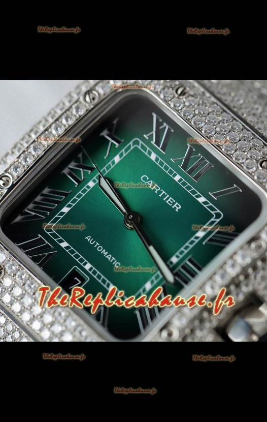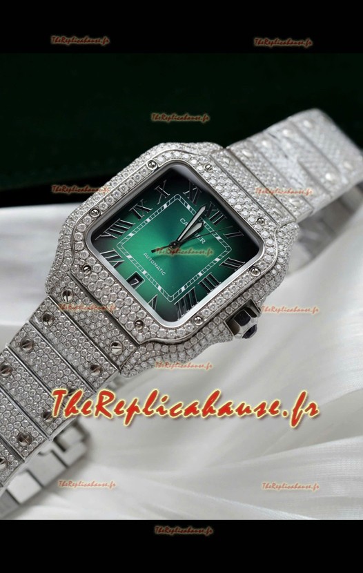 Montre Santos De Cartier avec cadran vert et pavage de moussane, réplique suisse