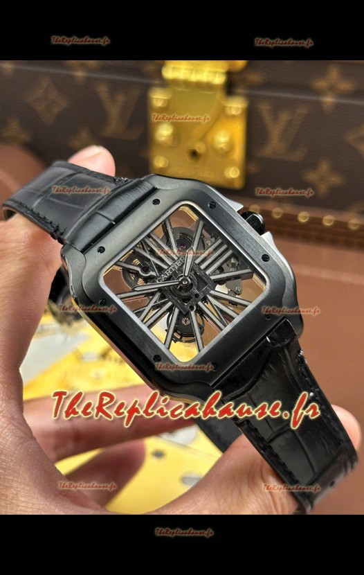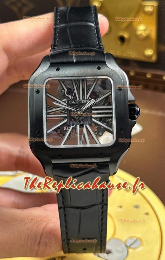 Montre Santos De Cartier Super Clone avec cadran squelette et revêtement PVD MLF