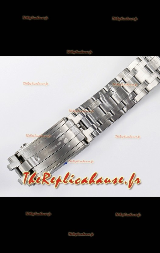 Bracelet en acier inoxydable 904L avec boucle déployante portant les marques et gravures d'Omega