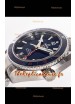 Cadran bleu avec quatrième aiguille GMT fonctionnelle et indicateur de date