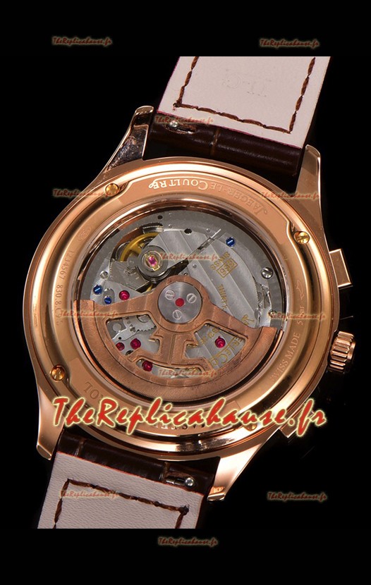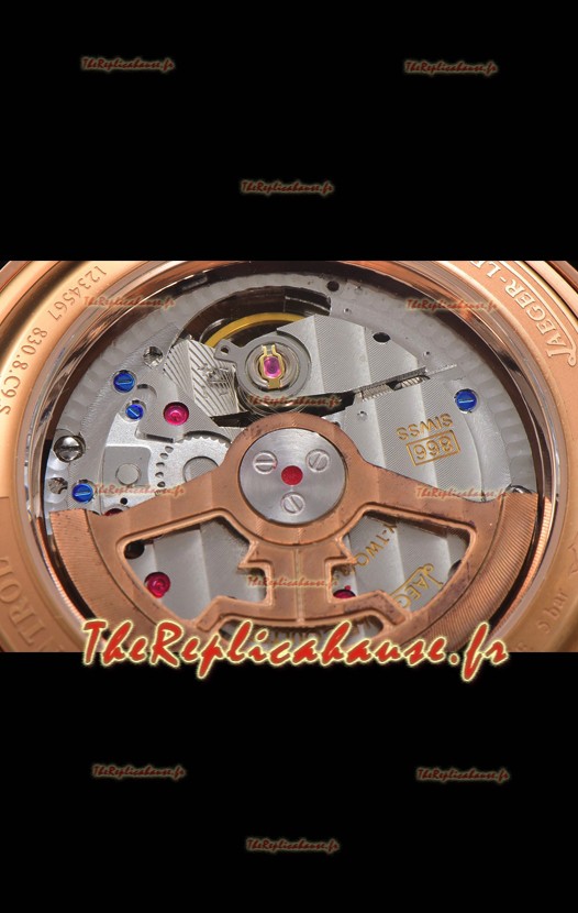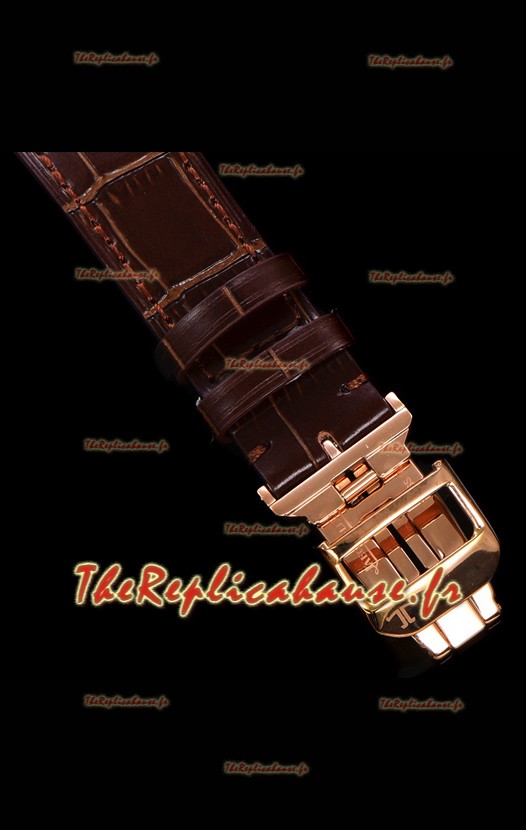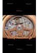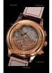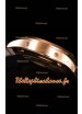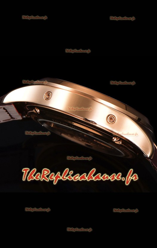Placage en or rose 18K sur un boîtier en acier inoxydable poli 904L avec fond transparent.