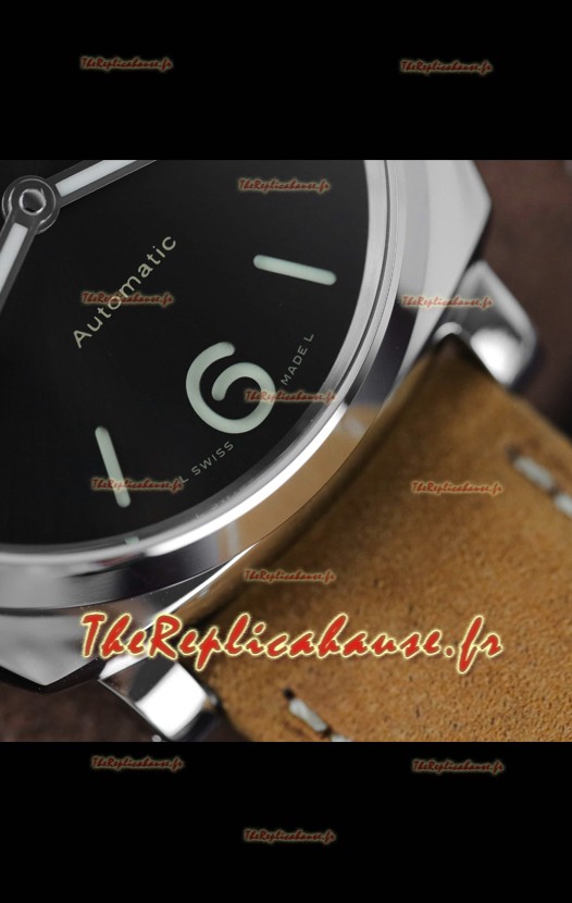 Mouvement suisse 7750 modifié d'origine, réassemblé pour ressembler au mouvement P9010. Ponts et rotor décorés pour ressembler au mouvement Calibre 9010 de Panerai
