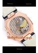 Plaqué or rose 18 carats sur boîtier en acier inoxydable massif 904L avec fond ouvert en acier.