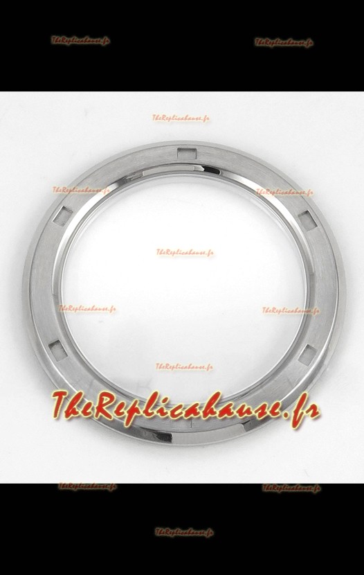 Boîtier en acier inoxydable poli 904 avec lunette sertie de diamants, exactement comme l'original.