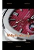 Cadran rose avec 3 sous-cadrans fonctionnels indiquant le jour, le mois et la date. Fonctions phase de lune avec indicateur jour/nuit.
