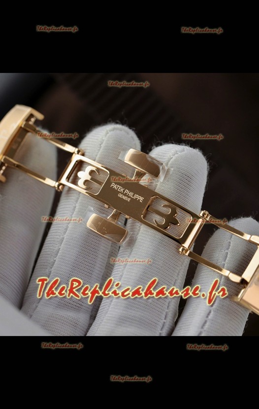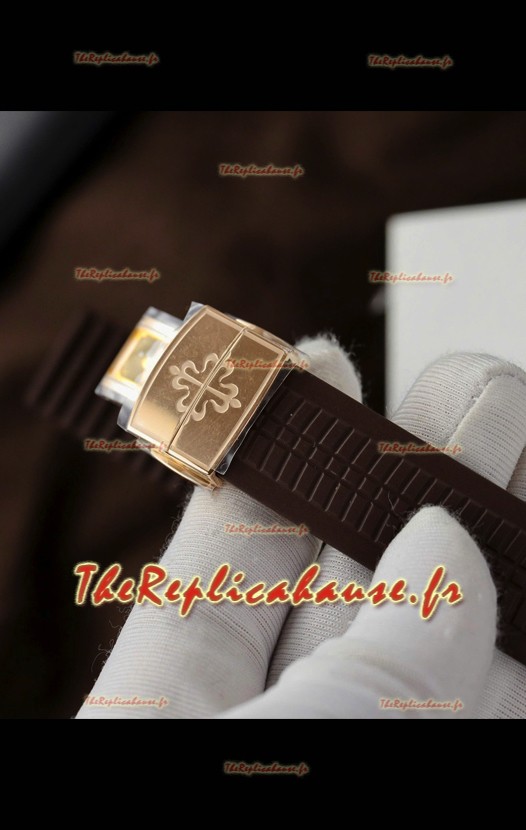 Bracelet en caoutchouc authentique avec marquages et gravures Patek Philippe et boucle déployante Patek Philippe signature, comme l'original.