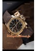 Cadran brun dégradé avec sous-cadran fonctionnel pour la date à 6 heures et quatrième aiguille fonctionnelle comme l'original.