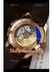 Plaqué or rose 18 carats sur boîtier en acier inoxydable massif 904L avec fond ouvert.