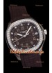 Cadran texturé de couleur marron avec guichet date à 3 heures. Lunette sertie de diamants.